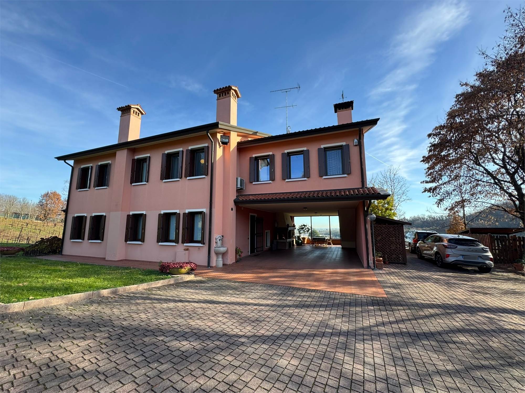 Splendida villa immersa nel verde delle colline trevigiane con vista panoramica in una zona tra le piu' esclusive del paese. L’immobile, edificato negli anni 80 , è in ottimo stato di manutenzione con finiture di pregio, distribuito su 3 livelli contornato da grandi portici abitabili (oltre 90 mq) con un ampio scoperto privato di oltre 1.000 mq. Al piano terra è stata ricavata una seconda unità abitativa indipendente di oltre 110 mq. (attualmente al grezzo avanzato).