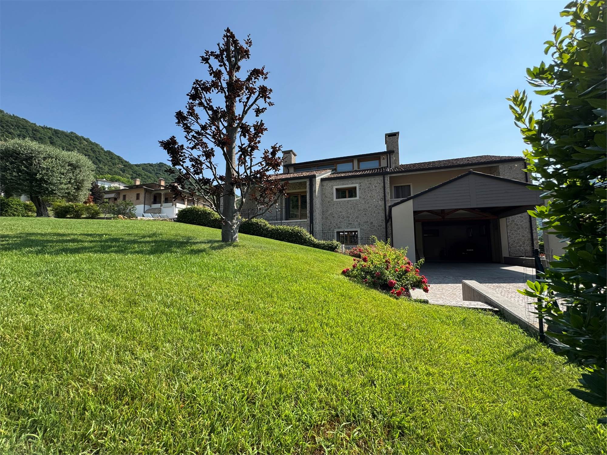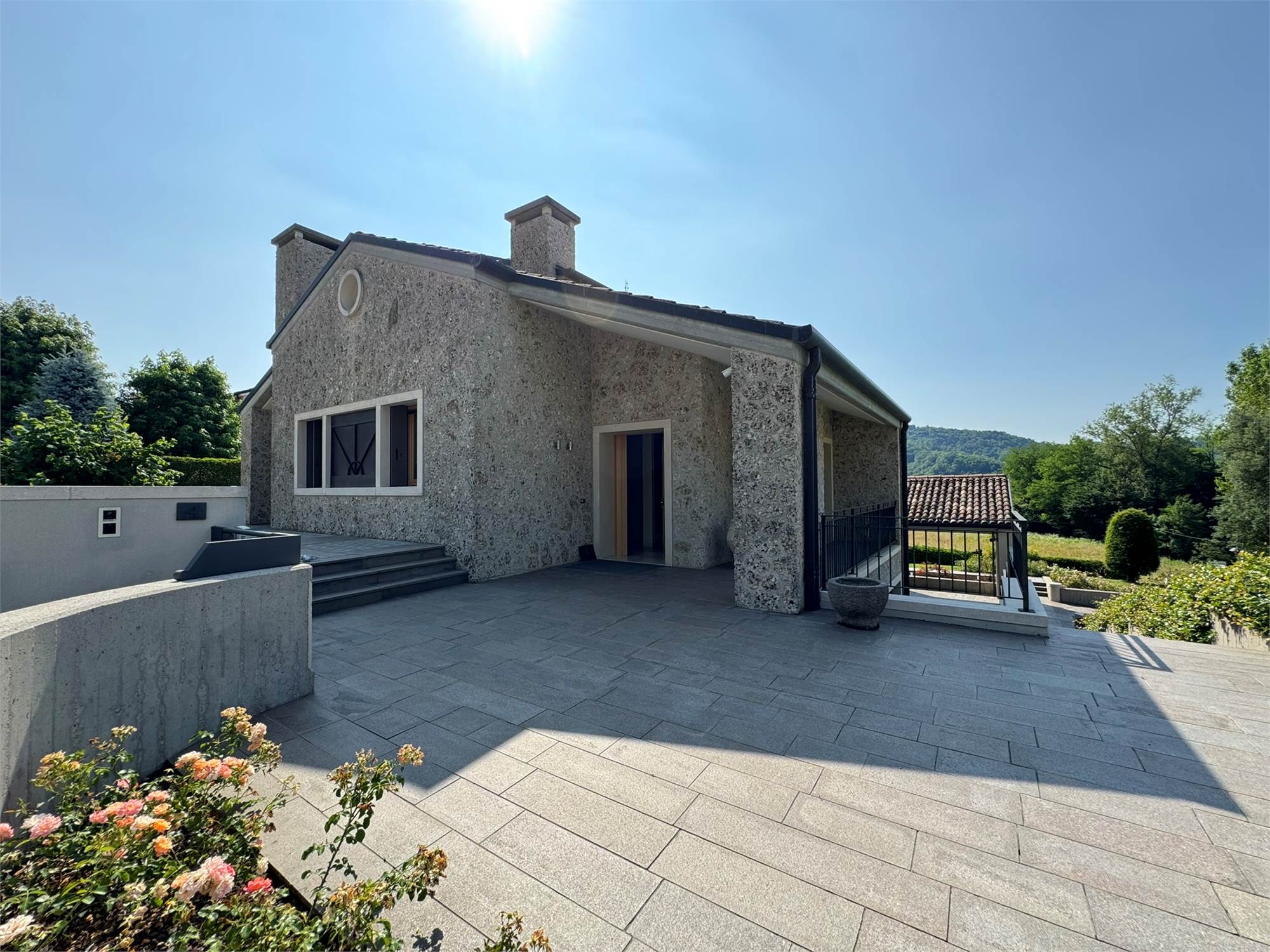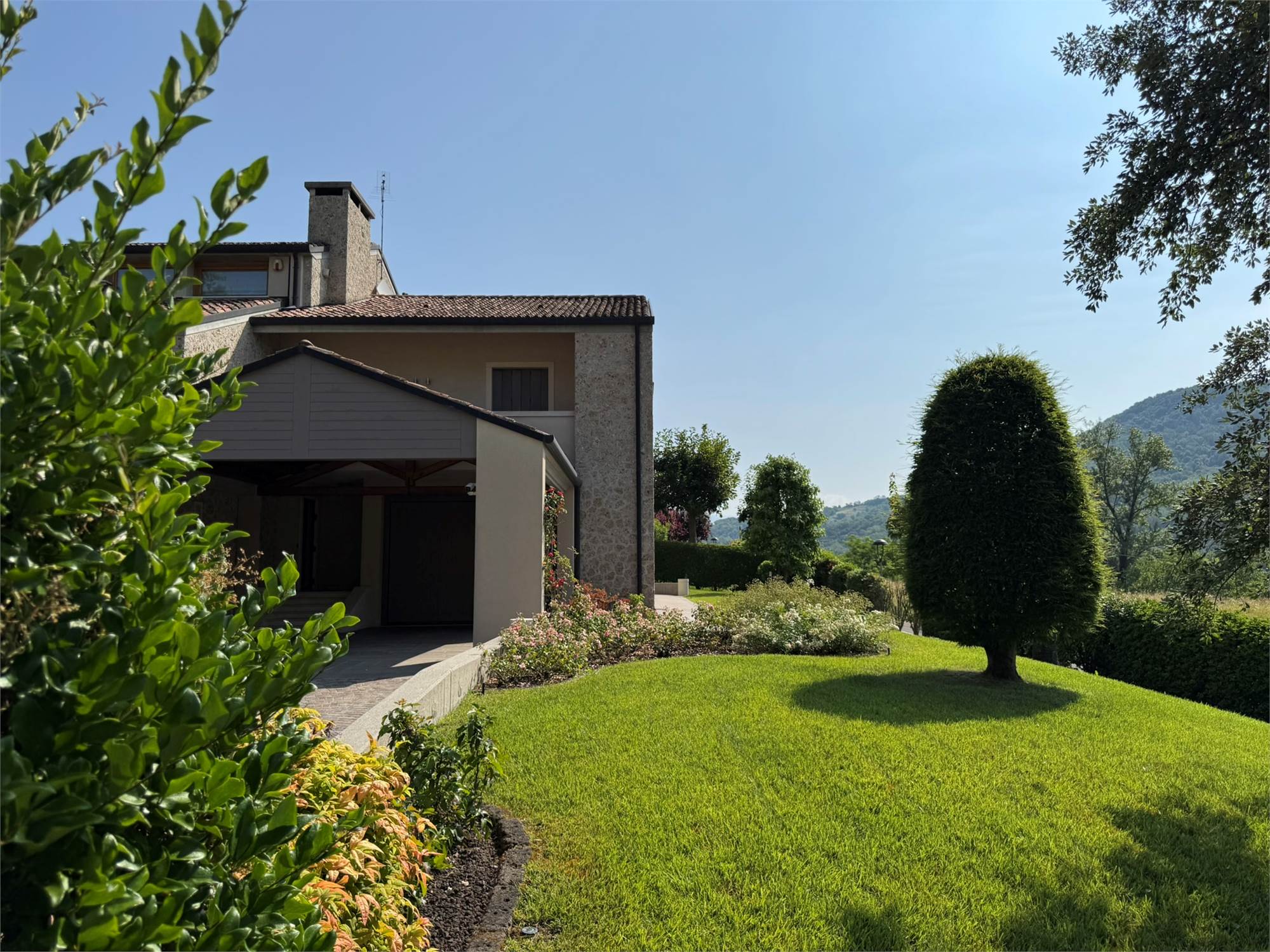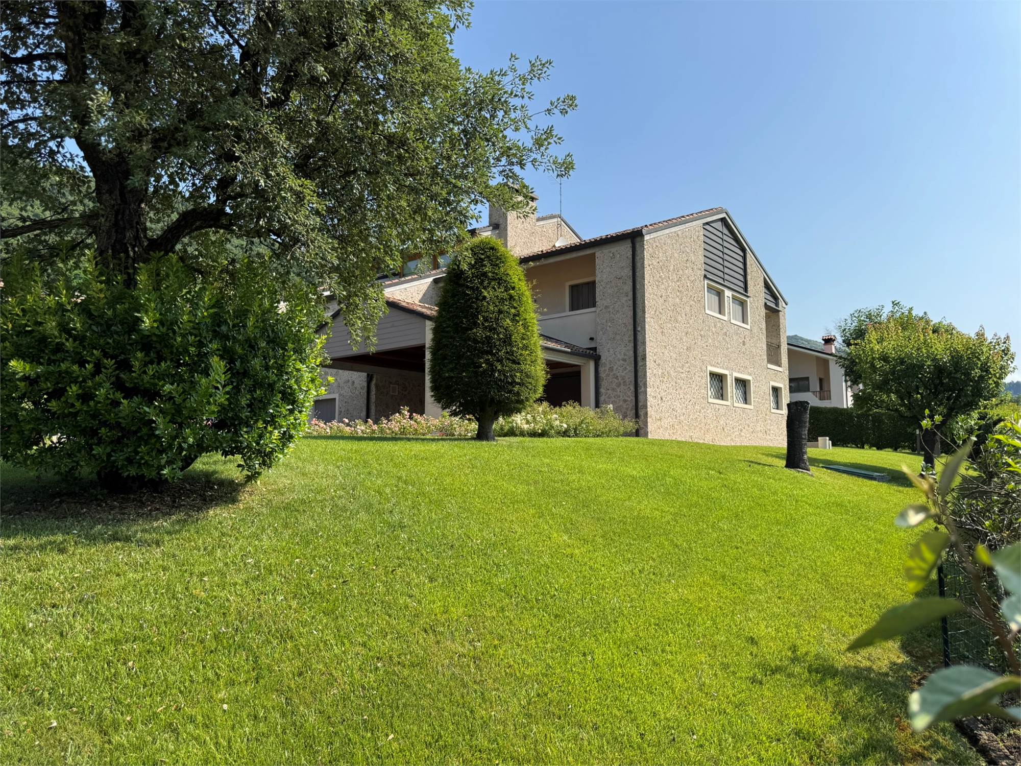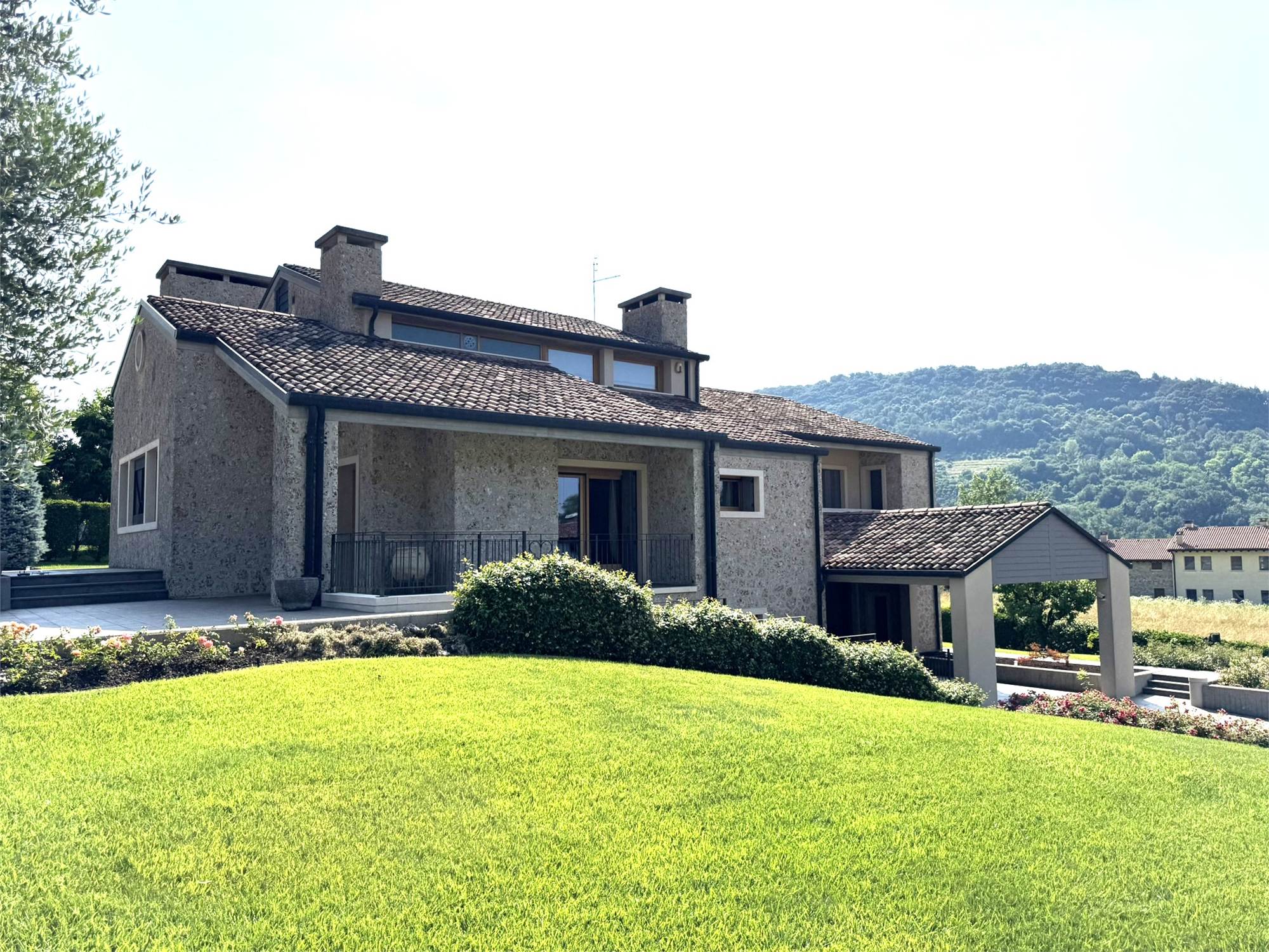 In una delle posizioni più esclusive delle colline trevigiane, proponiamo in vendita una villa di rara bellezza architettonica, immersa nel verde e circondata da un giardino curato con vista panoramica.