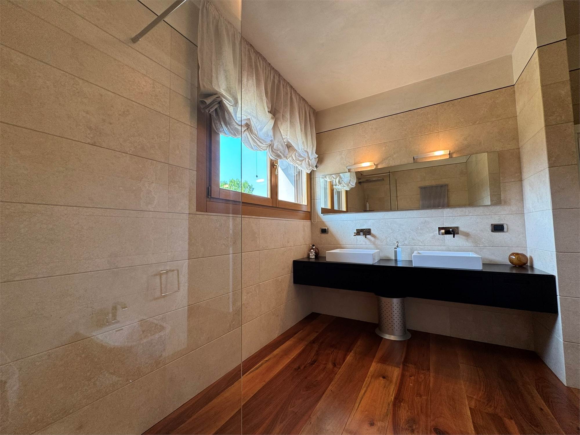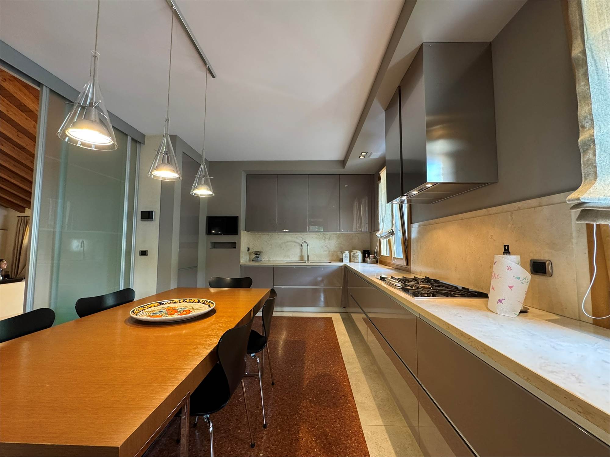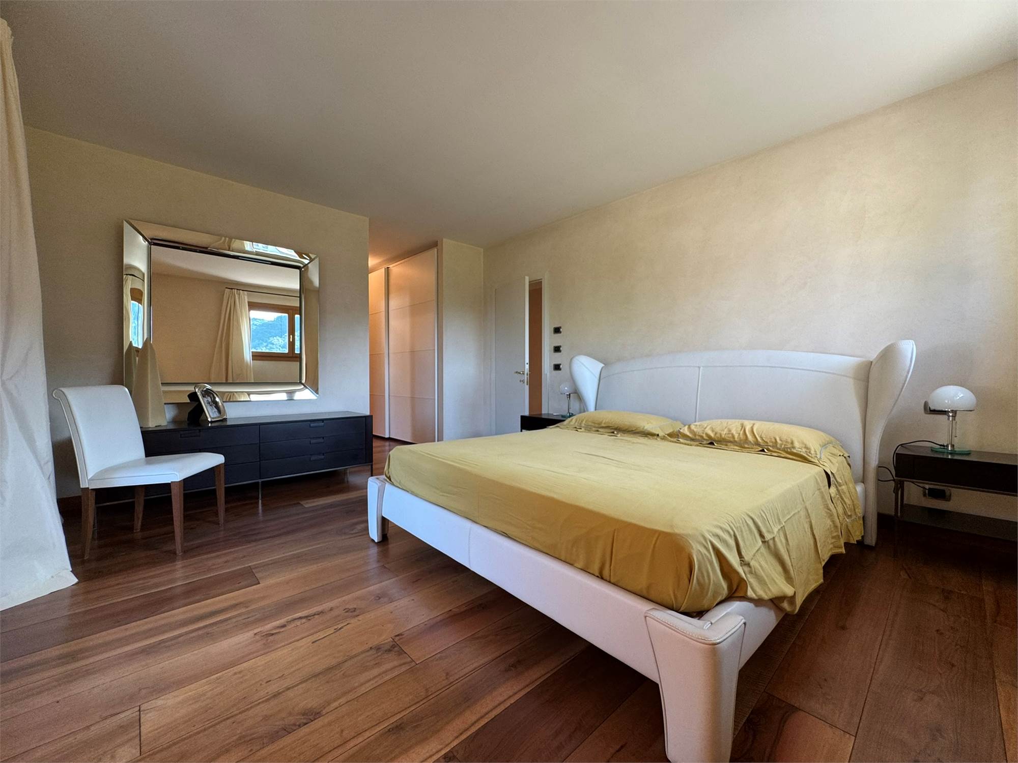 Realizzata nei primi anni 2000, l’abitazione si distingue per il suo stile classico-contemporaneo, elegante e senza tempo, impreziosito da finiture artigianali e arredi su misura progettati in armonia con gli spazi. Gli ambienti sono stati studiati nei minimi dettagli per unire funzionalità, comfort e rappresentanza.